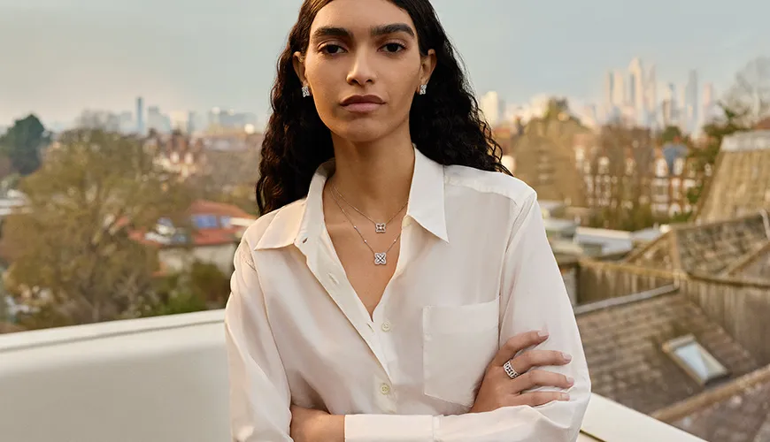 Одновременно с кампанией представлена линия новых украшений Lotus. Новый дизайн с четырьмя лепестками появился в подвесках, кольцах и серьгах из белого и розового золота. В основе каждого изделия — круглый бриллиант классической огранки, в то время как лепестки построены на скульптурной приподнятости, создающей баланс между структурностью и плавностью.